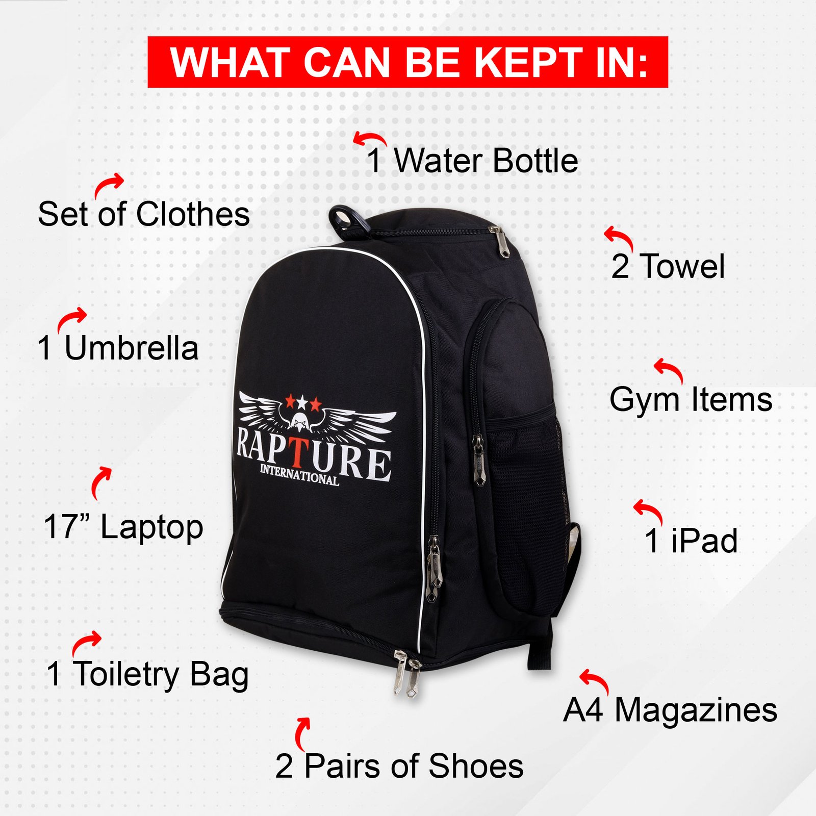 • Stay Hydrated: Keep the free water bottle handy in the dedicated pocket.
